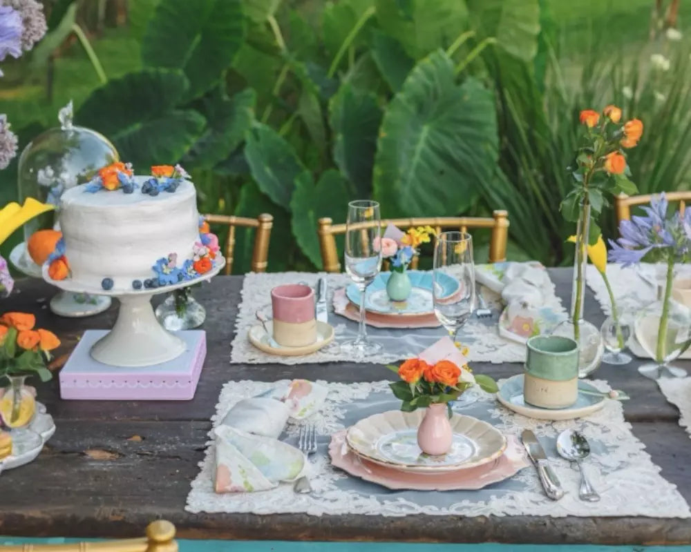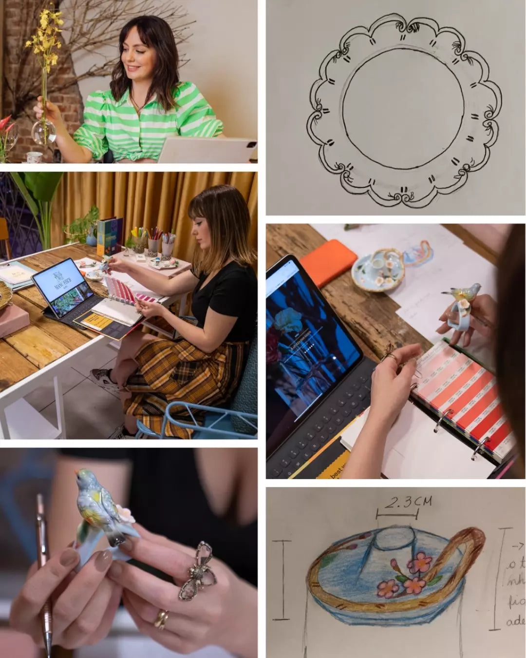 2013 - Desenvolvimento de Produto: Decidimos que nosso diferencial seria a exclusividade, criando memórias afetivas com peças únicas e manuais. Rascunhos foram feitos, rendas recortadas, porcelanas pintadas e cores escolhidas. O sonho tornou-se realidade
